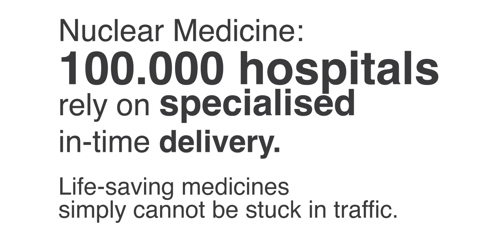 The logistics of radiopharmaceuticals is extremely time-sensitive due to the continuous decay of the isotopes. More than 100.000 hospitals rely on scheduled deliveries. Delays at national or sometimes even municipality borders as well as unclear transport regulations can mean lost doses — and missed opportunities to treat patients. Clear, predictable, and harmonised European transport legislation is essential for reliable delivery to patients across Europe.